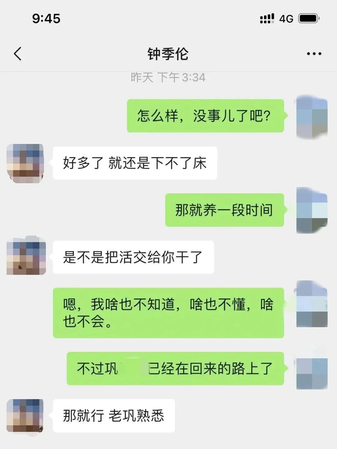 钟季伦提前结束休假