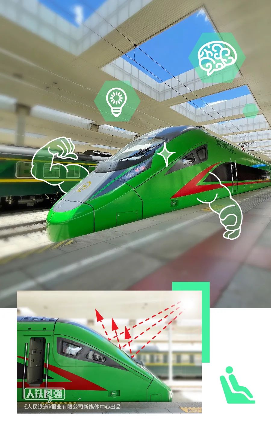 针对高原运用环境及客运舒适性,这款复兴号提升了部件绝缘、密封、抗紫外线等性能;创新采用独立悬浮式司机室结构,可有效减小振动,提高驾乘舒适度。