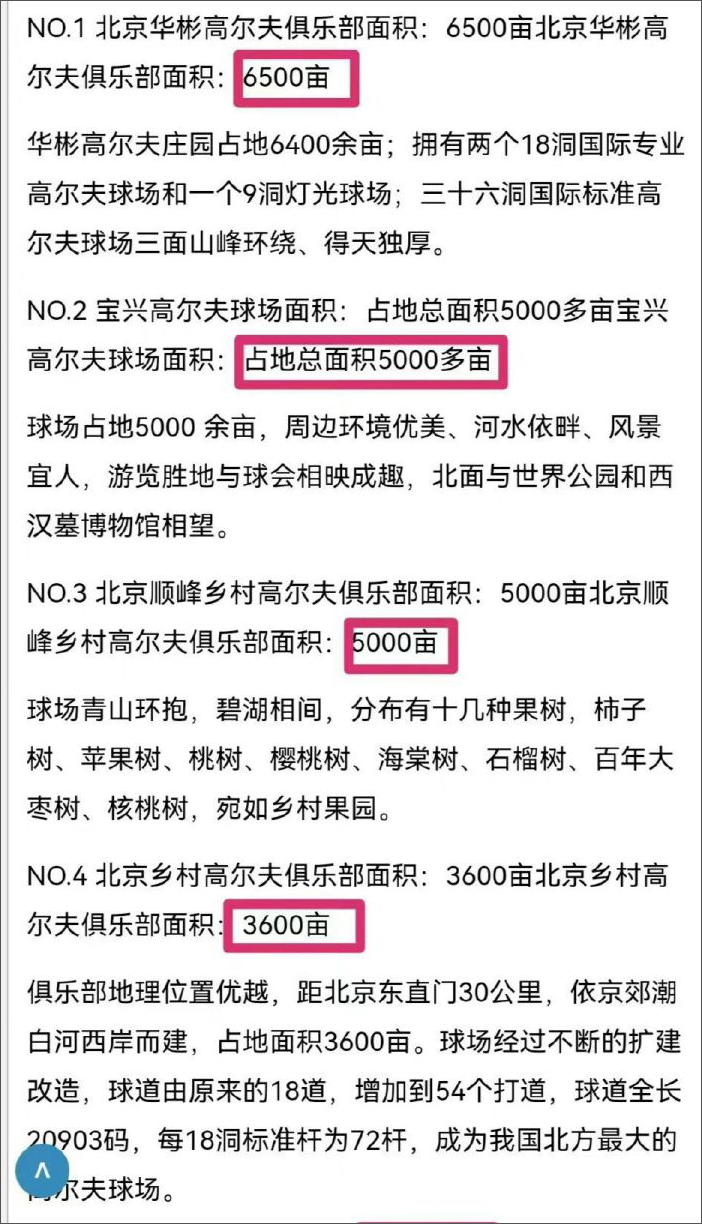 No.3北京顺峰乡村高尔夫俱乐部面积:5000亩;