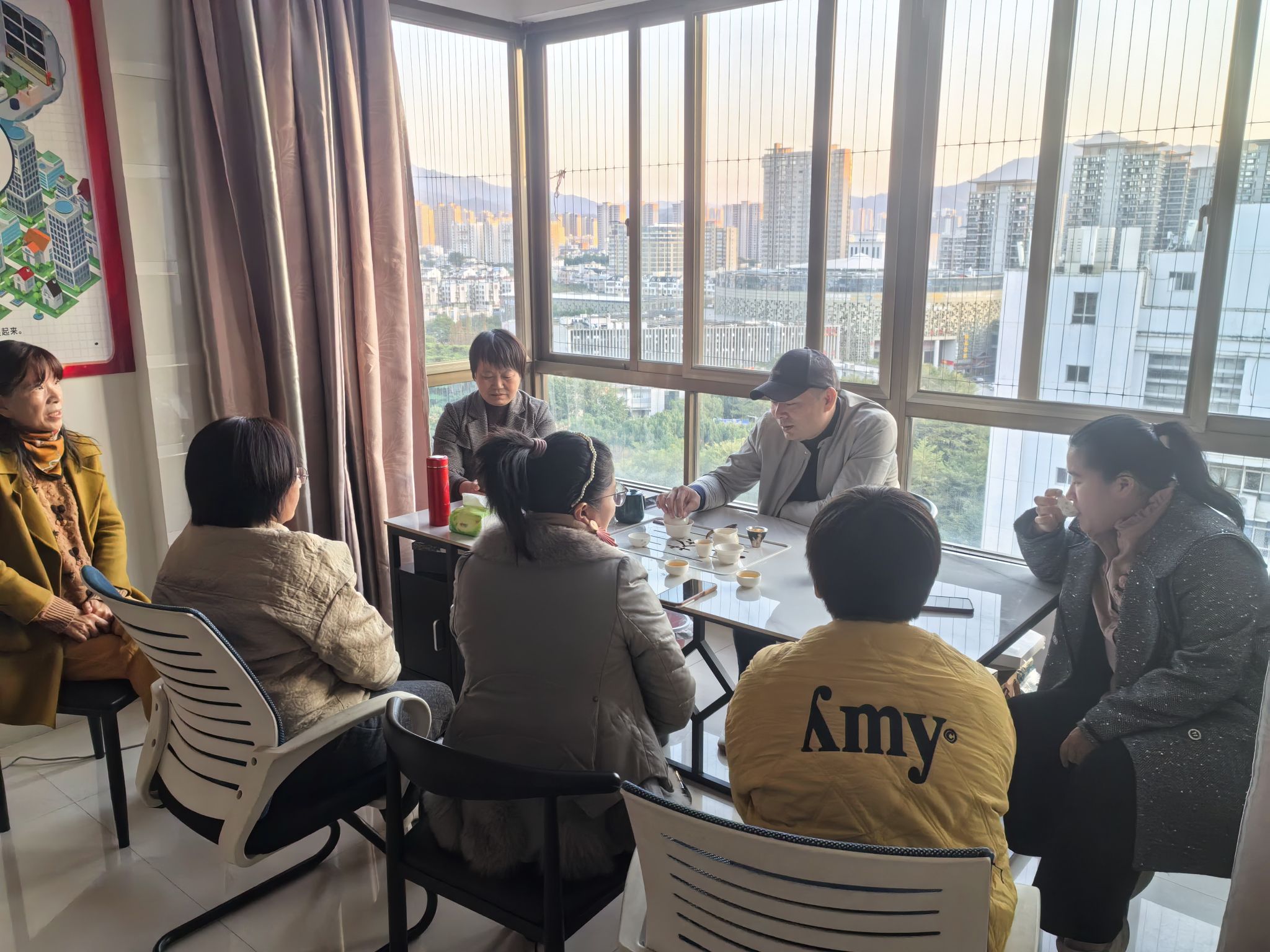 几位好朋友在鸿蒙云系统龙岩新罗区办公地点喝喝茶聊聊天