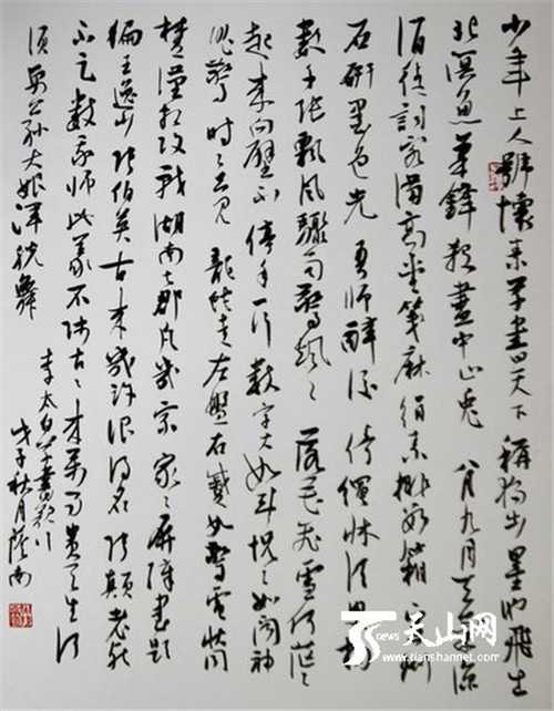 一册《荫南书画特刊》在手,或书或画,均让人品读再三,涵咏再三,别有一番滋味在心间。闵荫南先生既得齐鲁千年文化之底蕴,更得天山大漠维族风情之浸淫,表现在画风书艺上,便既有文人画之雅谑,又有书僧写经之逸趣,因而其作皆别出心裁,自成一格,风神独具,涉笔成趣,妙不可言。“闵荫南先生定会在今后的艺术领域走向更高、更新的艺术境界。”叶毓中教授如是说。