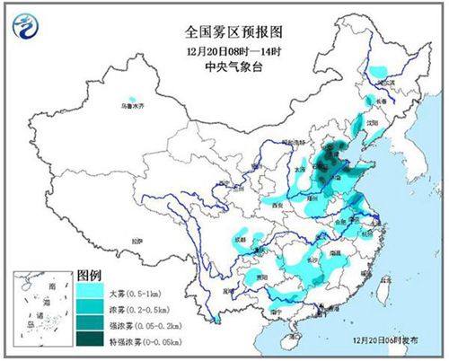此外,随着湿度加大,今明天上述地区还将出现大雾天气。20日早晨至上午,北京中南部、天津、河北中南部、山东、河南大部、江苏北部、安徽中东部、贵州中部、贵州中部、湖南中南部、广西北部、辽宁西部等地有大雾,其中,北京中南部、天津、河北中南部、山东西北部、河南北部、山东西部和北部、江苏北部等地的部分地区有能见度低于200米的强浓雾,局地有能见度低于50米的特强浓雾。