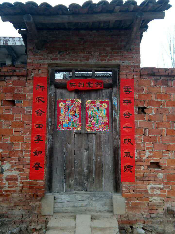 它以工整、对偶、简洁、精巧的文字描绘时代背景,抒发美好愿望。每逢春节,无论城市还是农村,家家户户都要精选一副大红春联贴于门上,辞旧迎新,以增加节日的喜庆气氛。看到一家家、一户户、一副副字体不一、内容丰富的对联,可以感受到中华文化的博大精深,感受到淳厚的乡风民俗和浓郁的年味,感受万家团圆、和和美美、喜气洋洋的欢欣和对美好愿景、幸福生活的殷殷期盼。 余亚飞《迎新岁》称:“喜气临门红色妍,家家户户贴春联;旧年辞别迎新岁,时序车轮总向前。” 家门口贴上春联的时候,意味着过春节正式拉开序幕。传统春联是由人手以毛笔书写,现在亦有机器印制的春联。春联的种类较多,有街门对、屋门对等,每幅春联都有横批。 有些地区“春联”也是各种春贴的统称,而有些地区又把条状、不成对的春贴称为春条、春挥。朝鲜则有立春榜、立春书、立春贴等名称,简称春榜、春贴等。 春联,起源于桃符(周代悬挂在大门两旁的长方形桃木板)。据《后汉书·礼仪志》所载,桃符长六寸,宽三寸,桃木板上书降鬼大神“神荼”、“郁垒”的名字。“正月一日,造桃符著户,名仙木,百鬼所畏。”所以,清代《燕京时岁记》上记载:“春联者,即桃符也。”五代十国时,宫廷里,有人在桃符上题写联语。《宋史·蜀世家》说:后蜀主孟昶令学士辛寅逊题桃木板,“以其非工,自命笔题云:‘新年纳余庆,嘉节号长春’”,这便是中国的第一副春联。直到宋代,春联仍称“桃符”。王安石的诗中就有“千门万户瞳瞳日,总把新桃换旧符”之句。