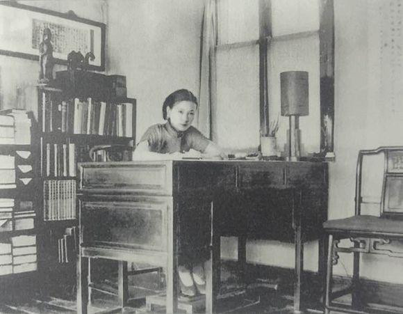 14、1935年 林徽因在北平北总布胡同三号家中书桌前。老式家具、古典美人,古色古香的感觉。