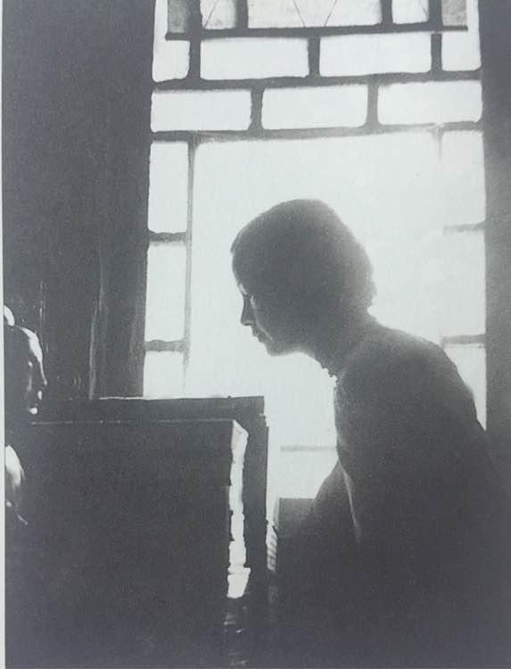 16、1930年代中期 林徽因在北平北总布胡同家中佛像前 。逆光、佛像、美人,是在佛前祈祷吗?林徽因慈眉善目,在逆光的拍摄下,犹如佛光。