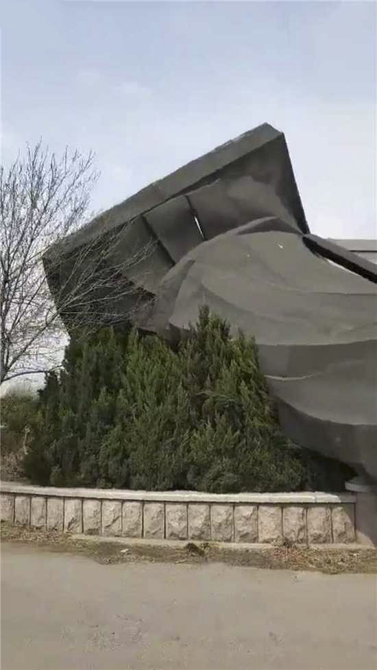 山东滨州刮起大风,有"世界第一"始皇帝铜像的秦皇台风景区内,高度约19米的秦始皇铜像被大风吹倒!