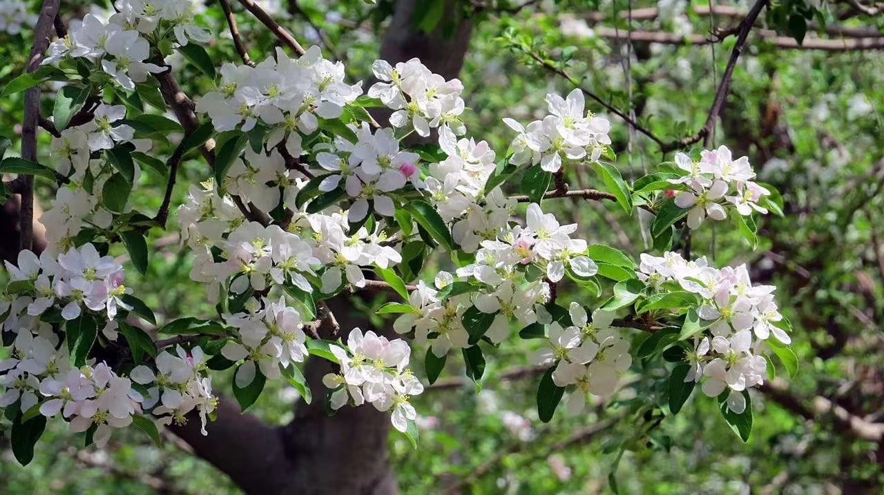 万荣玲霞生态园的苹果花开了