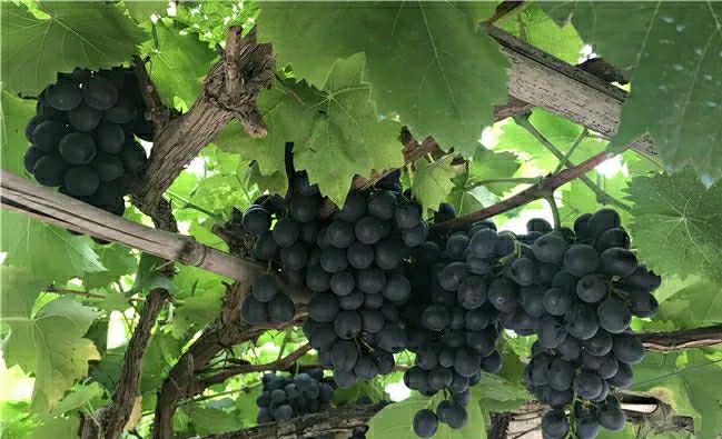 据了解,巨峰葡萄是他葡萄园中的主栽品种之一,它适应性强,抗病、抗寒性能好,喜肥水。果实穗大,粒大,成熟后果皮成紫黑色,皮厚,果粉多,果肉较软,味甜、多汁,因为生长期长,所以果实质量更好,长出的葡萄颗粒大,含糖量高,味道非常甜美。