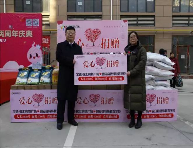 宝德商业公司负责人表示,宝德悦汇城开业以来,各项工作得到社会各界的大力支持,在悦汇城成立两周年庆典之际,我们怀着感激之情,在回馈广大顾客的同时,向固安特殊教育学校捐赠爱心物资为固安的公益事业尽一份绵薄之力。