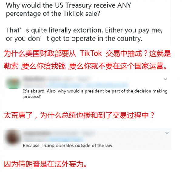 很多美国网友纷纷指出,总统的“国家勒索”是法外妄为。