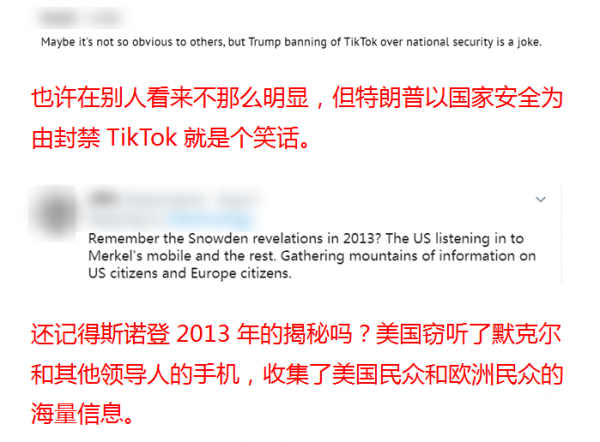 而一些外国网友也直言:特朗普政府以国家安全为由封禁TikTok,“就是个笑话”。