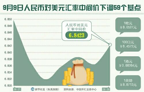 9日人民币对美元汇率中间价报6.8423,较前一交易日下调59个基点。