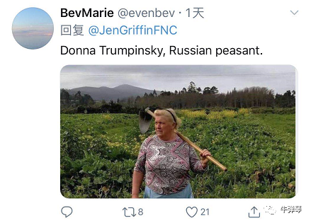 反正,在美国社交媒体上,不少美国人就ps了“俄罗斯农民”的照片,然后恍然大悟: