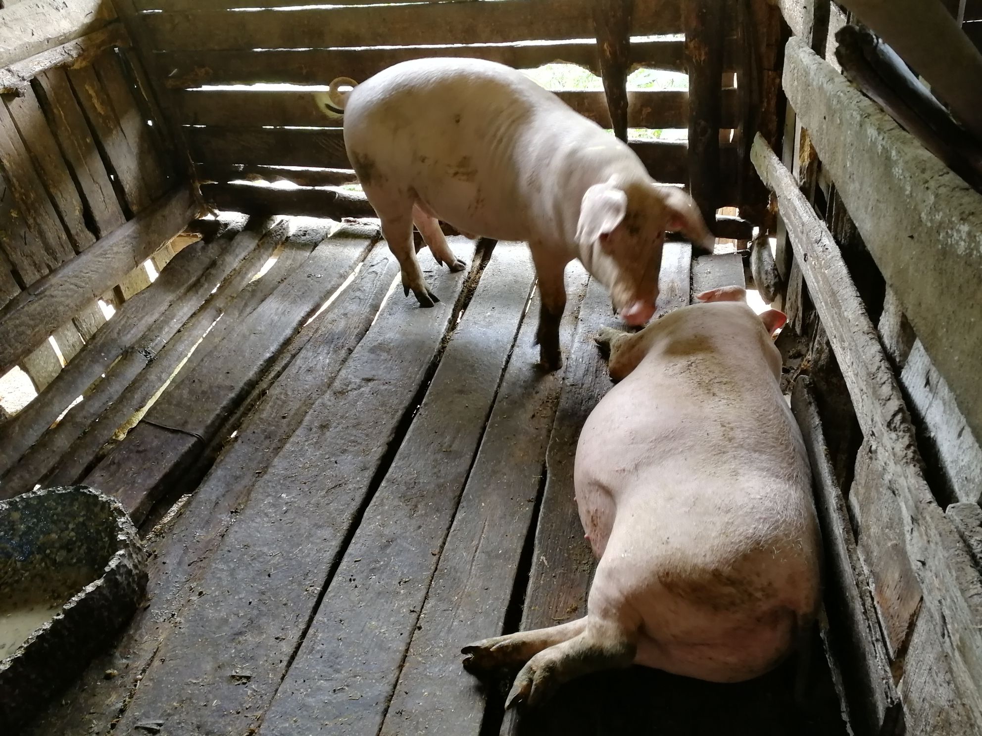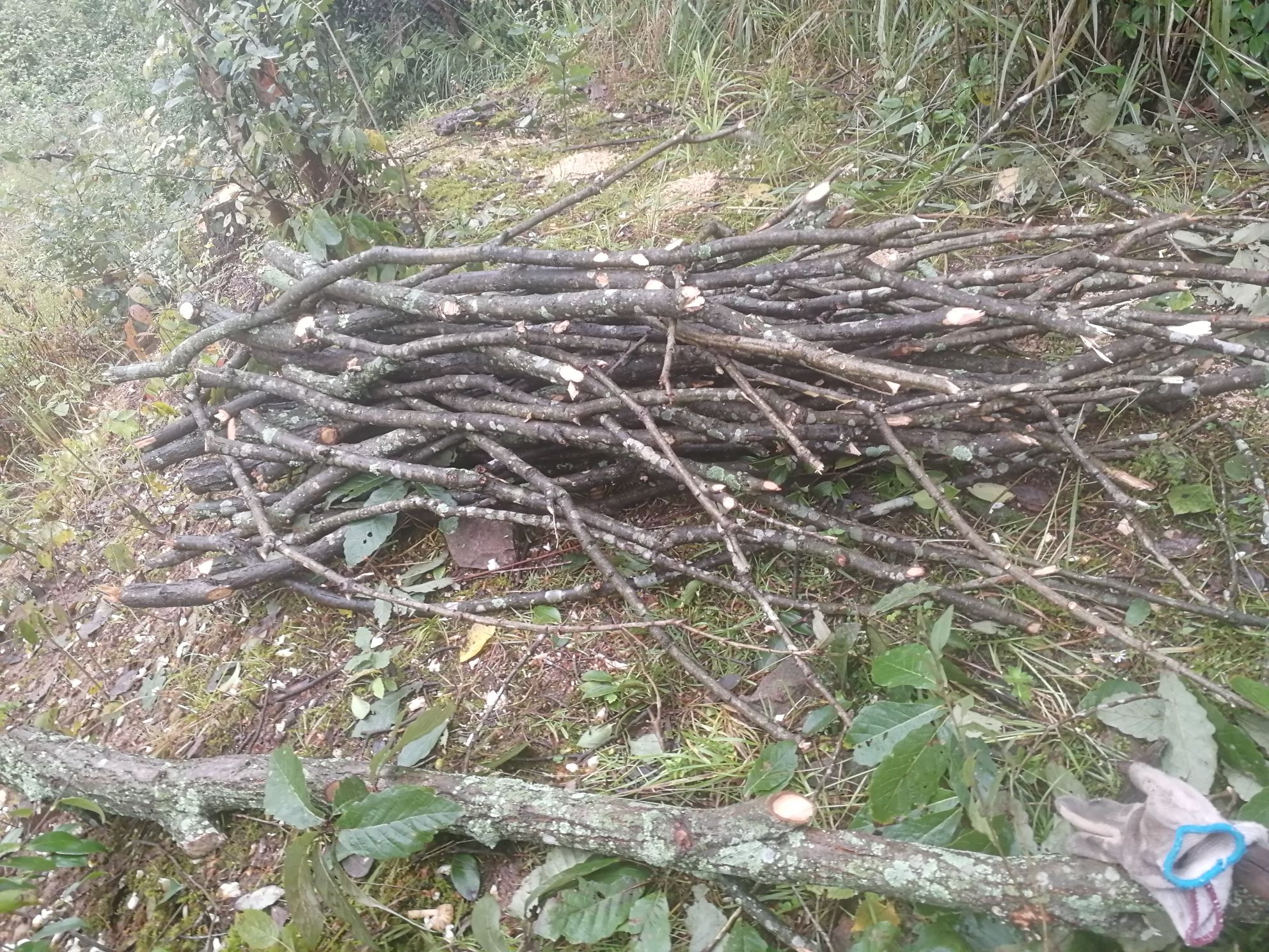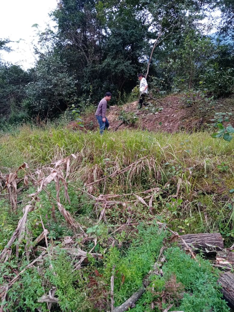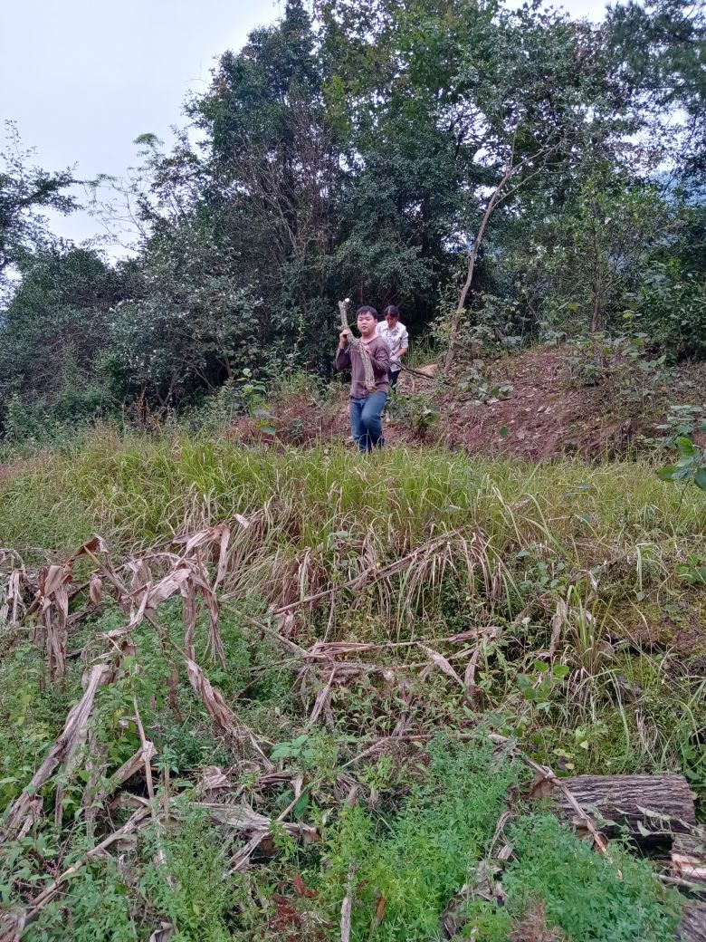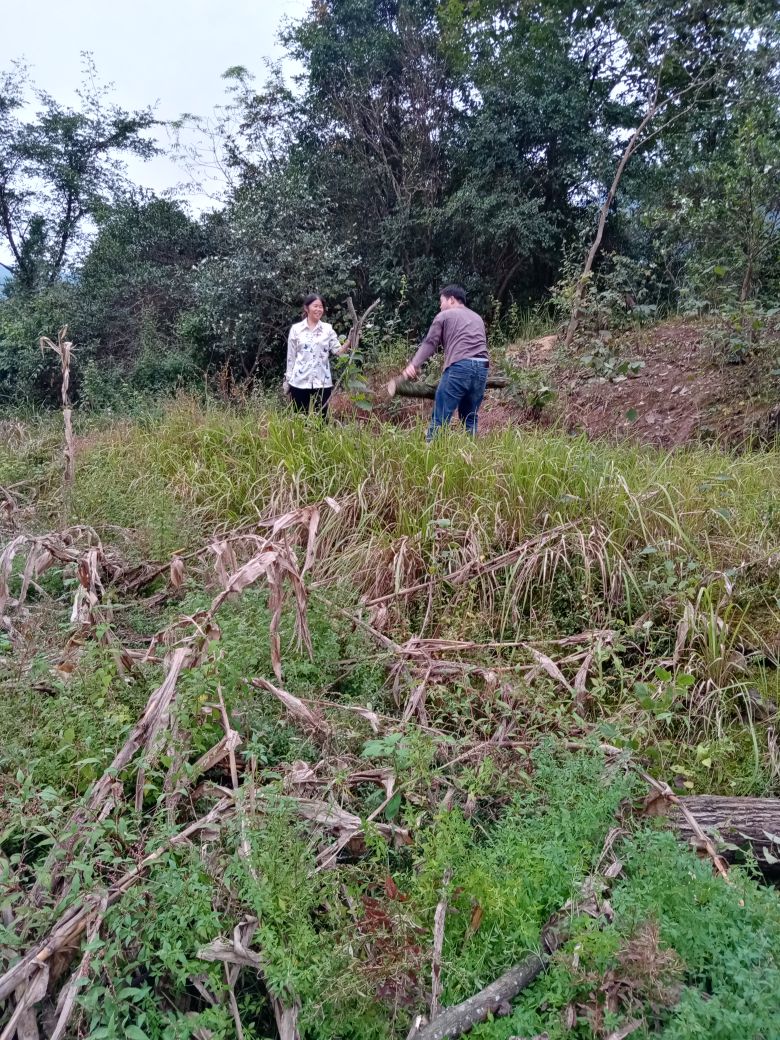 连走路都要拄着拐杖,才能艰难地一步一步向前挪。看见了吗,吃力地背着一块劈渣块。