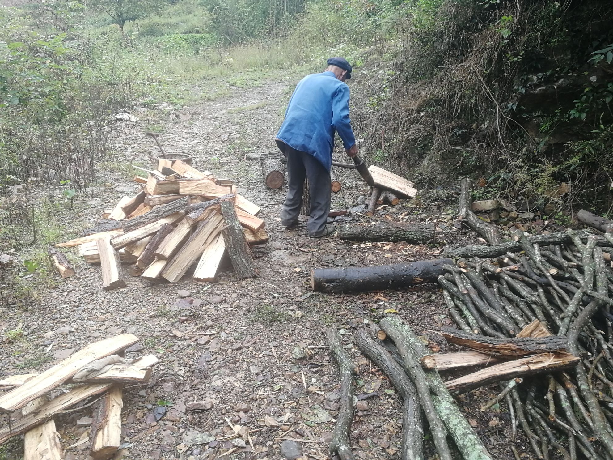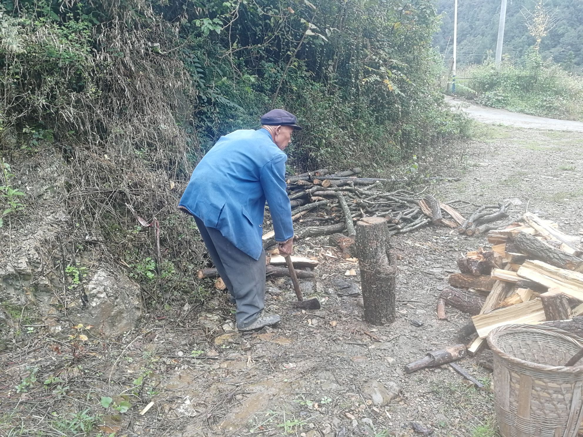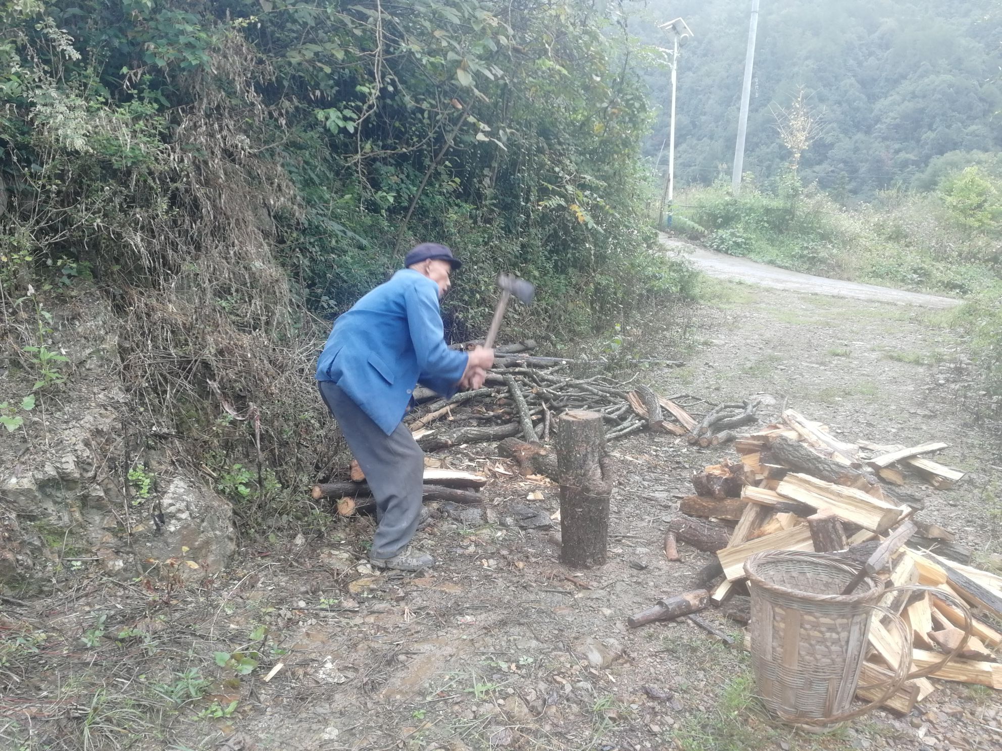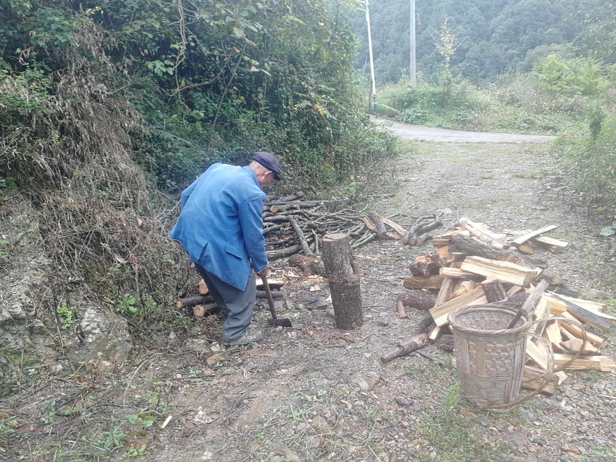 年迈的父亲,尽管手脚不便,仍然一斧一斧地将坚硬的木头劈成小块。