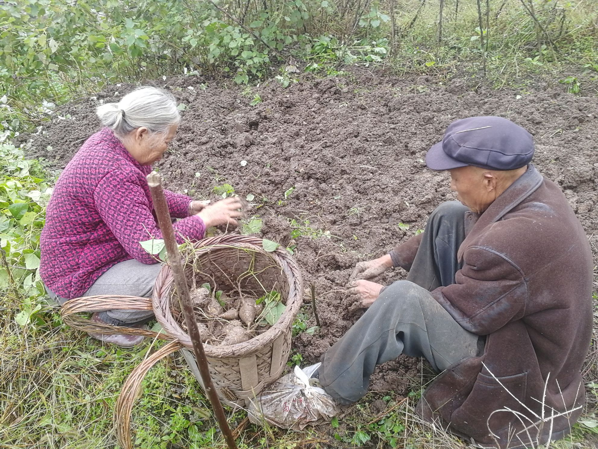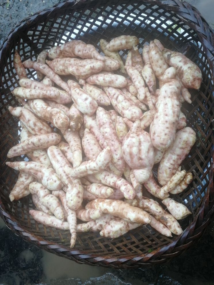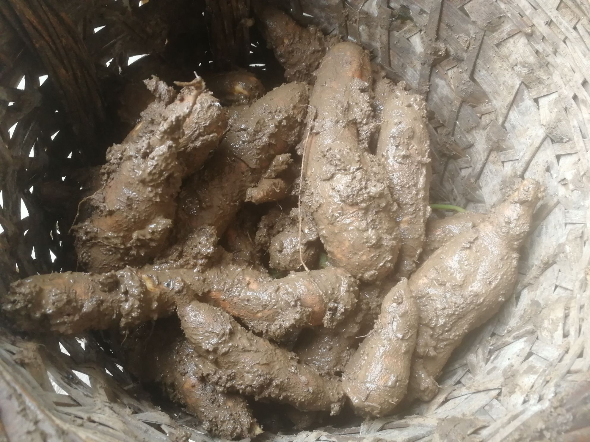 由于连续多日下雨,从地里抠挖出裏满泥巴的红薯。