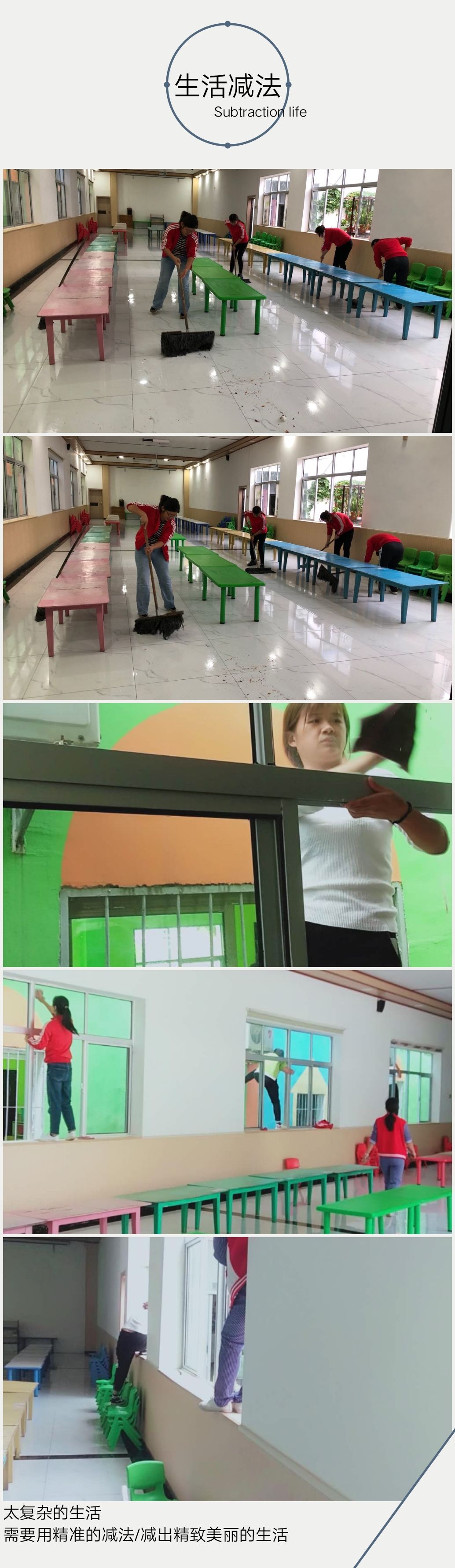 饭后我们几位保育员老师就开始餐厅以及各个区域的卫生啦