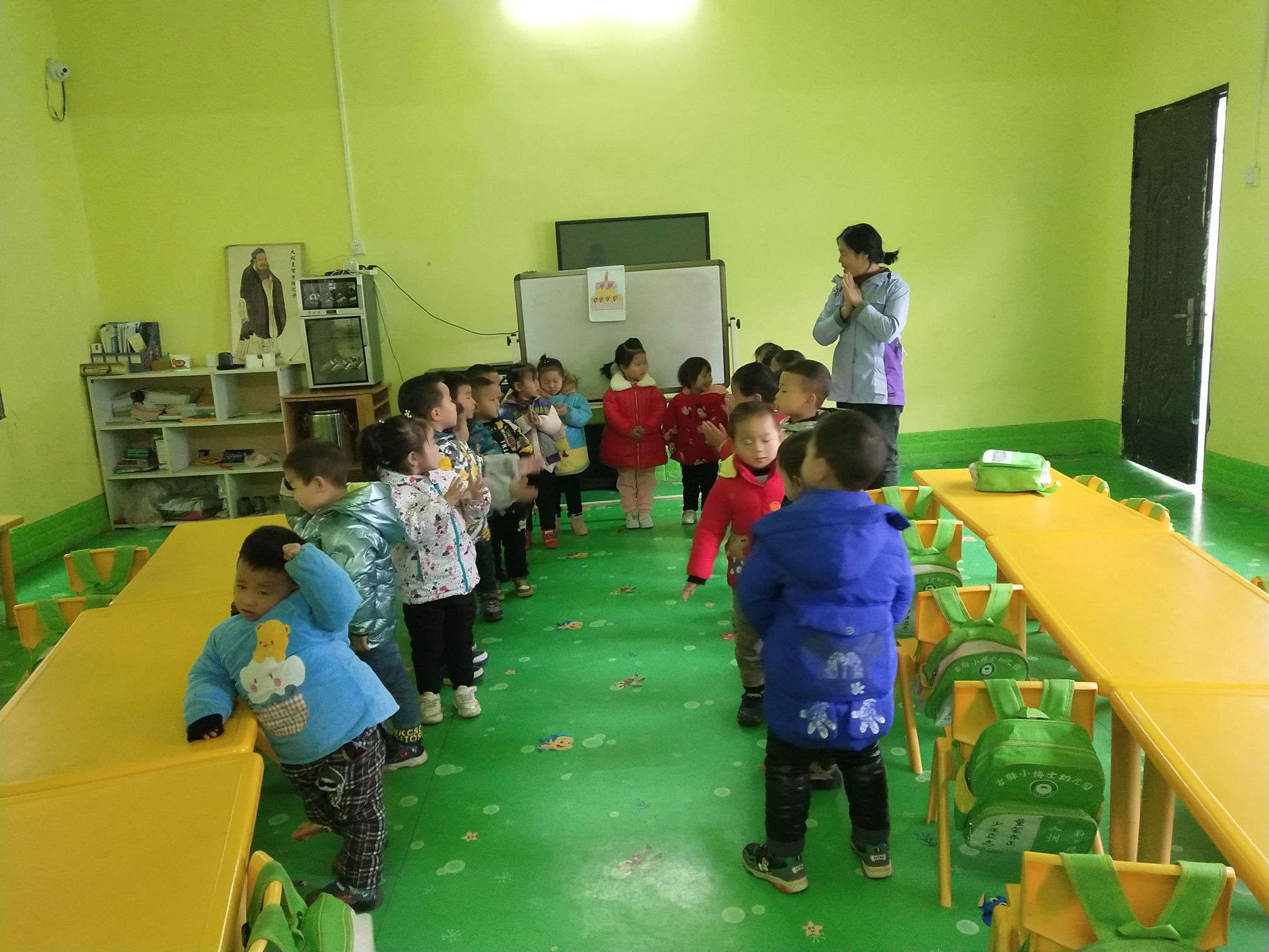 周一也是我们班潘永棿小朋友4岁生日,大家一起为她过生日,祝她生日快乐呀,健康快乐,茁壮成长