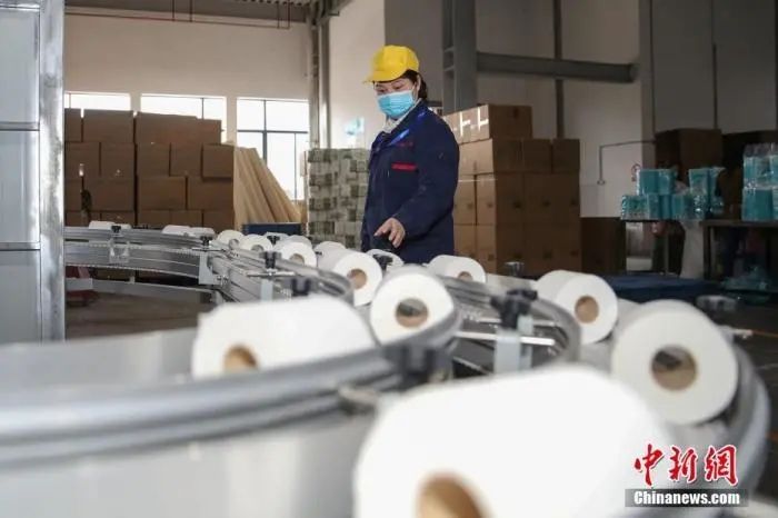 资料图:2020年4月,某公司的工人在整理即将出口的卫生纸。中新社记者 瞿宏伦 摄