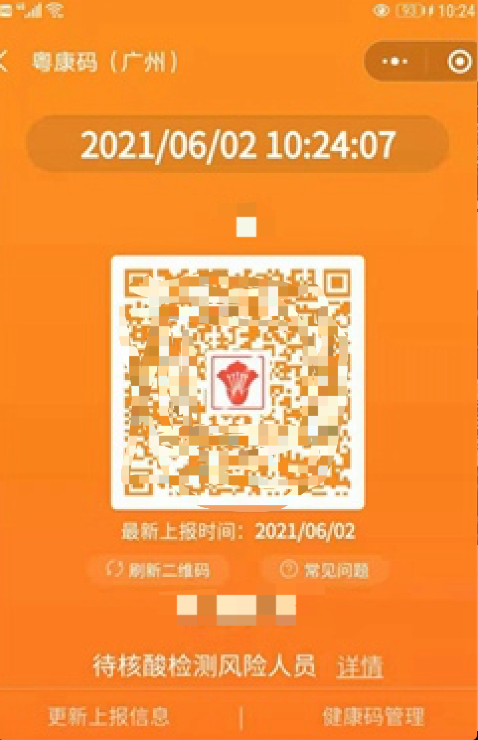 可以通过“穗康”小程序或者“粤省事”小程序看到自己健康码的颜色。也会收到以下短信提醒: