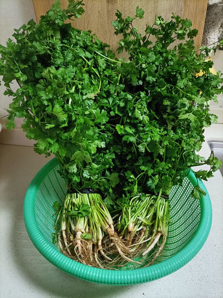 何兰英送的香菜、红薯粉(还未干就给我装了一袋)、磨芋豆腐。