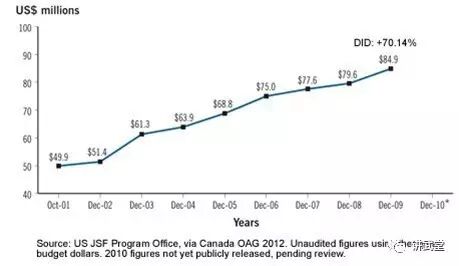 F-35价格走势,从4990万美元一路上涨到8490万美元。