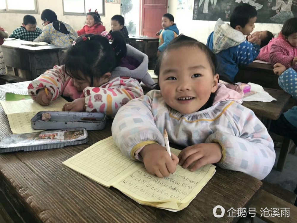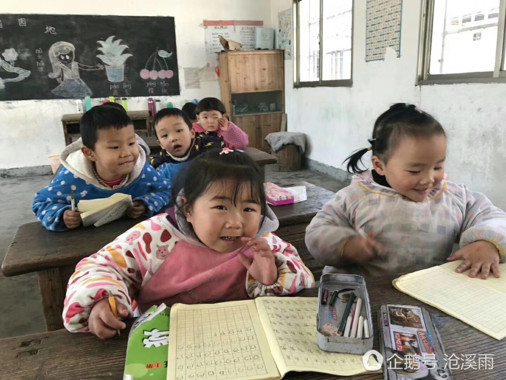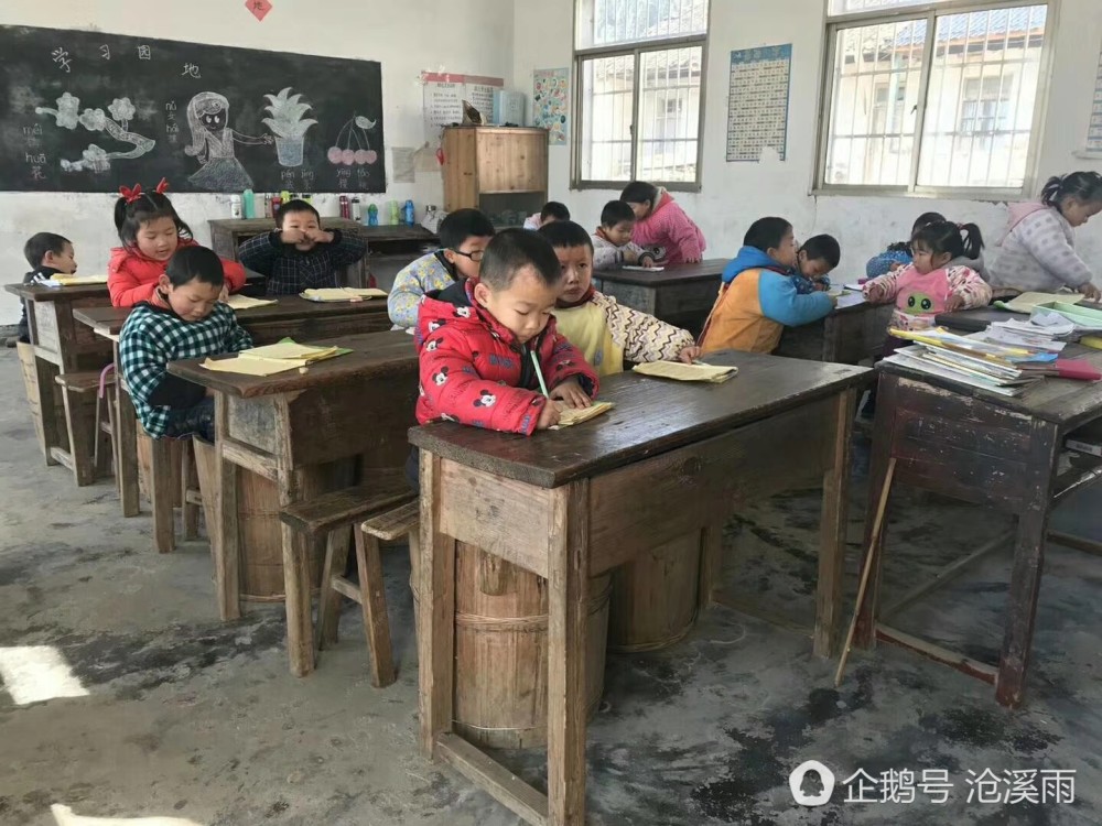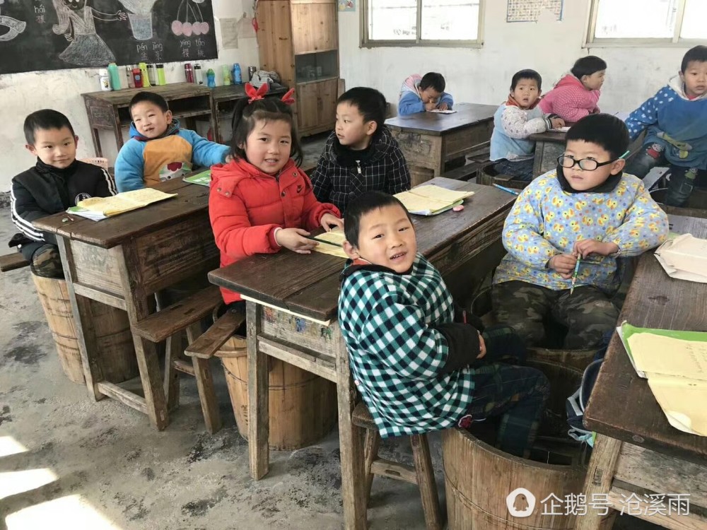 2017年12月19日,安徽黟县柯村镇宝溪村,由于天气太冷,村中的学前儿童脚踩火桶上课。