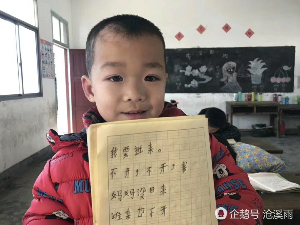 虽然小手冻得通红,但是小朋友的字写得很工整。