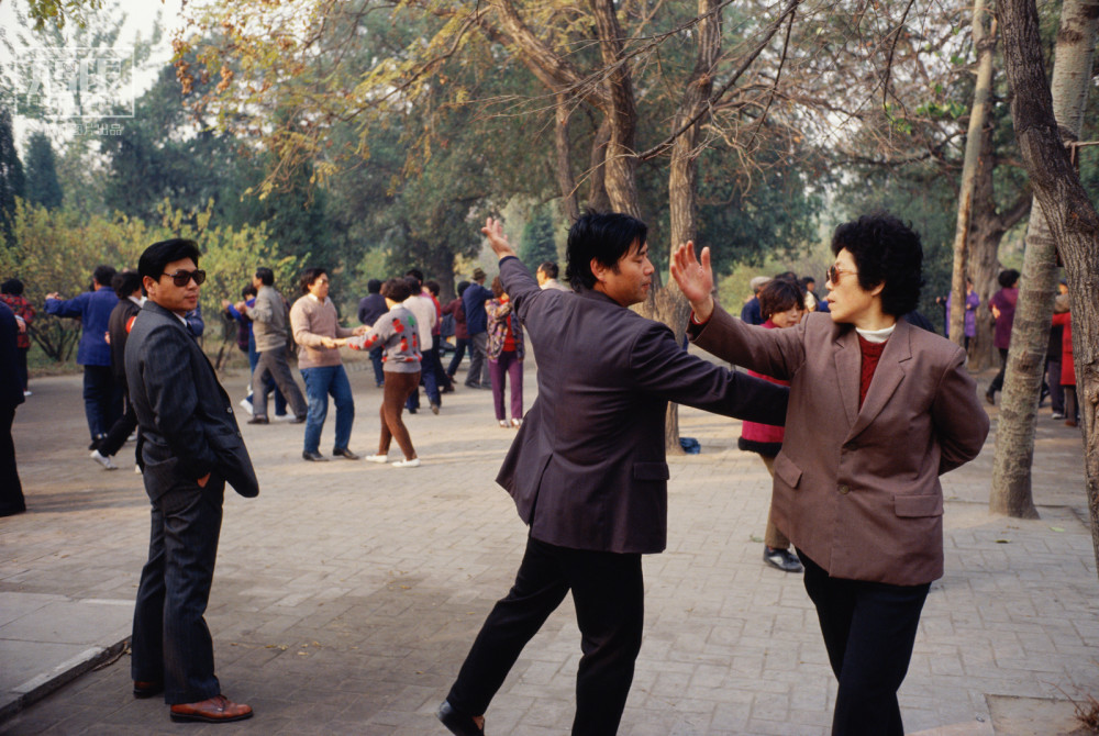 1985年,北京,清晨人们**在天坛公园跳舞。把西服当成休闲装来穿,也是那个年代中国人的一大创意。