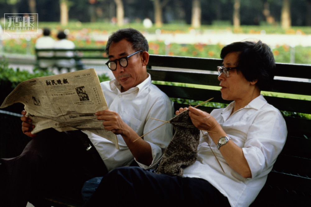 1986年,上海,公务员夫妇在公园休息。