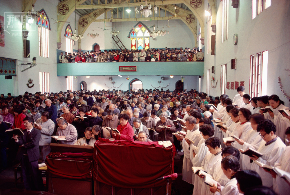 1996年,福建福州,人们**在一个古老的基督教堂里做周日祷告。