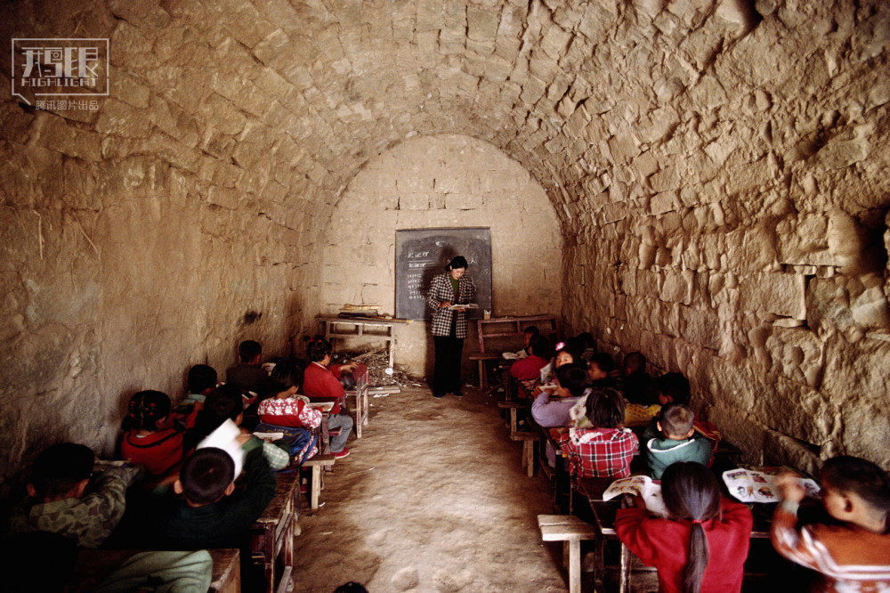 1998年,陕西,延安附近的一个在窑洞里的学校。