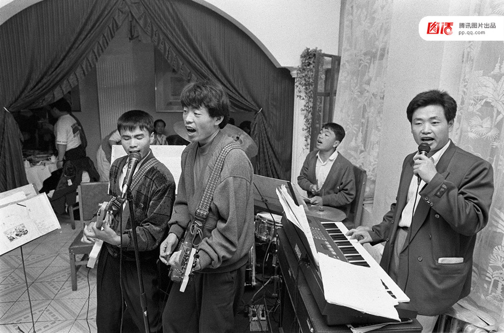 1993年,在黑龙江密山市的农家摇滚乐队,反映农家生活的摇滚受青睐。他们被一家酒店聘为专职乐队。新华社记者陈凯星摄