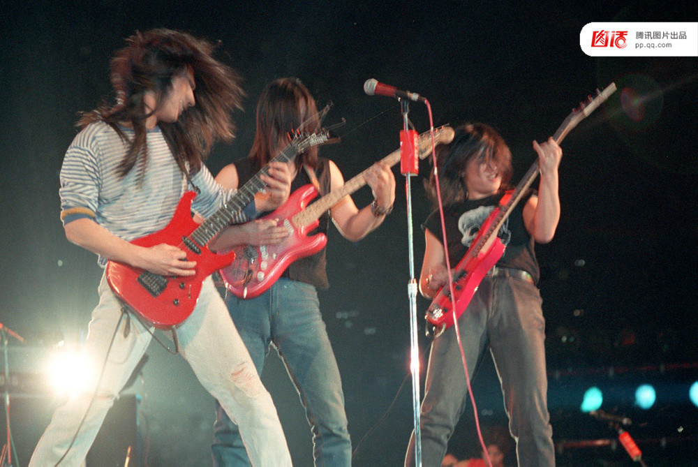 “1990现代音乐演唱会”上,当年刚组建的唐朝乐队,身手不凡。新华社记者王继雨摄