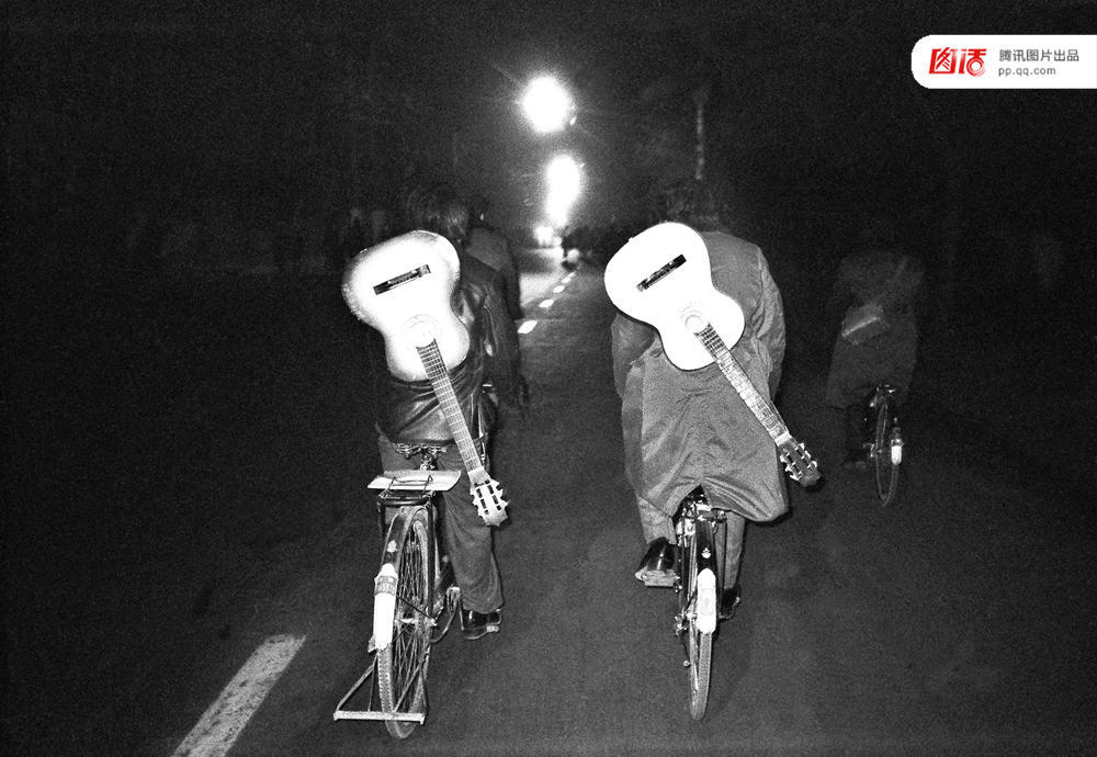 1985年,北京,背吉他骑自行车的青年。图/王文澜 视觉中国