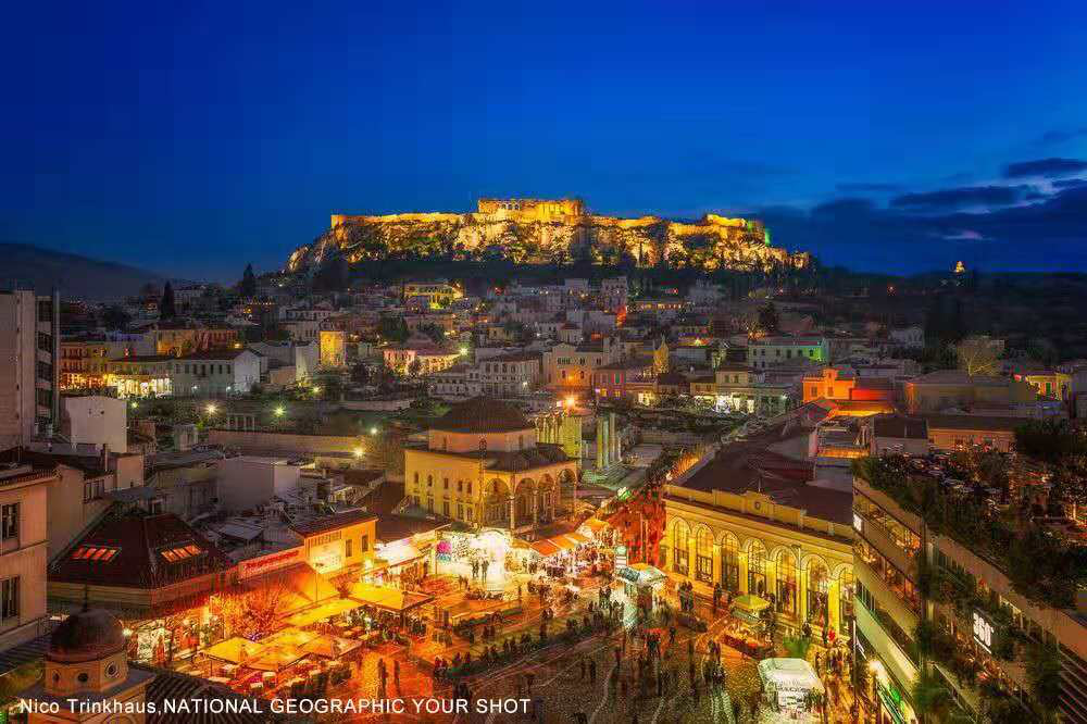 就像美国大城市纽约一样,雅典也是个不夜城。看著这张色彩丰富的照片,我就想起当时我看到如此古老的一座城市、却日夜都有极度丰富的生活风景,心中那股吃惊的感觉!蒙纳斯提拉奇广场(Monastiraki Square)是许多地铁线的交会点,也是有著知名跳蚤市场、各种商店和餐厅的贸易中心。(摄影:Nico Trinkhaus)