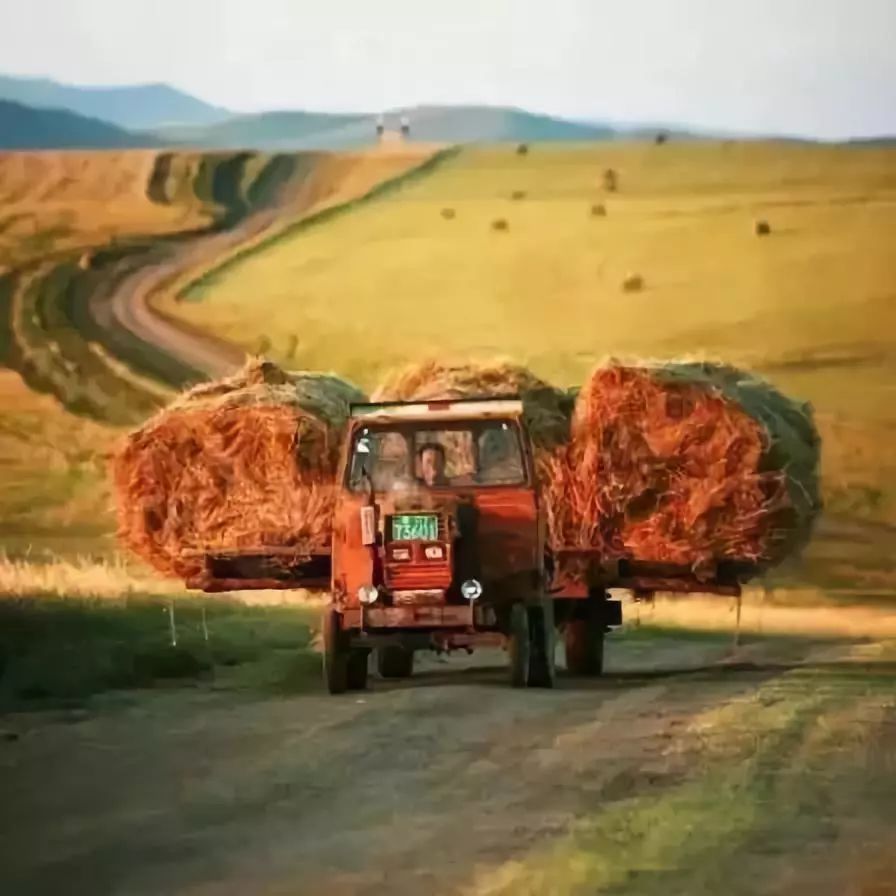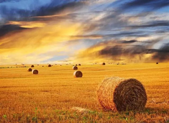 这里不止草原,还有大片的麦田,在九月收割之后,麦秆被卷成巨大的草垛,像是棋子一样遍布在辽阔的地里。