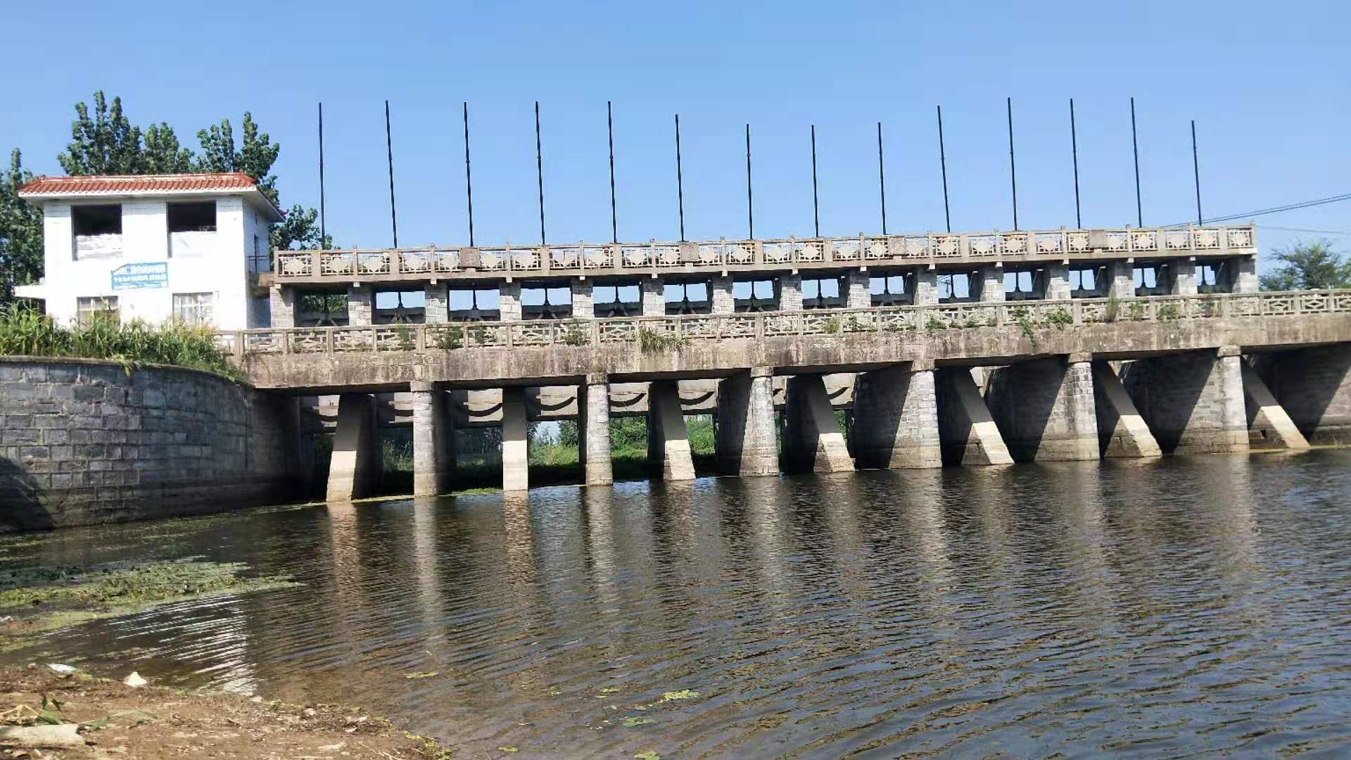 桥有七孔,条石做基,传统建筑,桁架平板柏油公路桥,大桥长约60米,桥宽5米。闸门有十四扇,泄涝,蓄水全由手工、电动两种升降方法。闸门由水泥,黄沙,石子,钢筋混合而成,非常坚固。