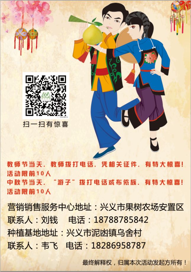 中秋节当天,“游子”或布依族青年男女拨打电话,将有特大惊喜!活动限前10人